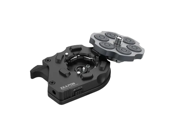 Revolver Quick Release — инновационный механизм быстрых креплений для камер и аксессуаров, который минимизирует время на установку/демонтаж оборудования и обеспечивает надежную фиксацию. Система совместима с большинством стандартных голов и платформ для видеосъемки.