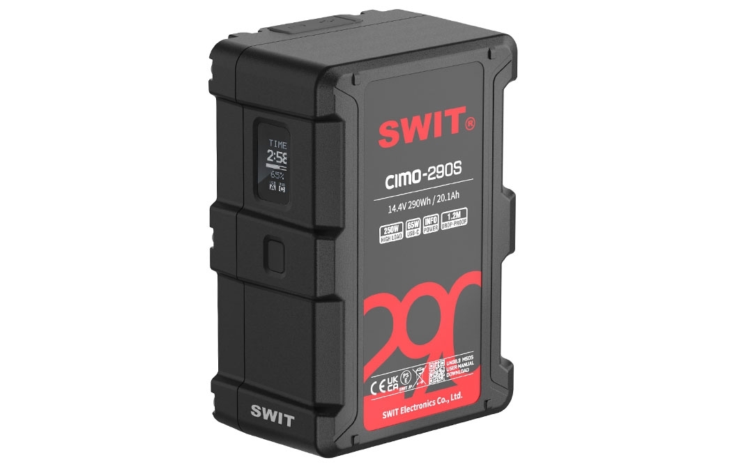 SWIT CIMO-290S аккумуляторная V-lock батарея мощностью 290Вт.ч (пиковая нагрузка до 335Вт) и разъемами D-tap/USB-C/USB-A для питания камер, мониторов, аксессуаров, планшетов или ноутбуков. Тройные литиевые элементы обеспечивают более высокую плотность энергии, большую емкость при меньших габаритах и отличные низкотемпературные характеристики, способные обеспечивать питание при температуре окружающей среды до -20 °C.